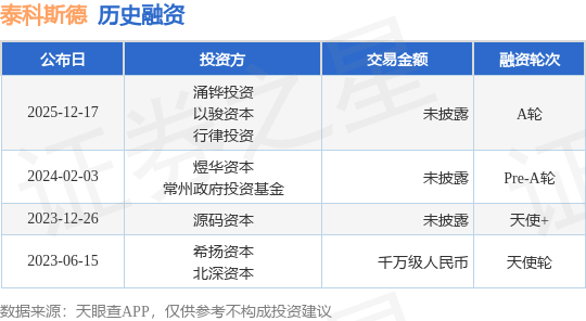 证券之星音讯,依据天眼查APP于12月17日发布的信息收拾,长沙泰科斯德科技有限公司A轮融资,融资额未发表,参加出资的组织包含涌铧出资,以骏本钱,行律出资。